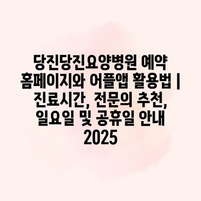 당진당진요양병원 예약 홈페이지와 어플앱 활용법 | 진료시간, 전문의 추천, 일요일 및 공휴일 안내 2025