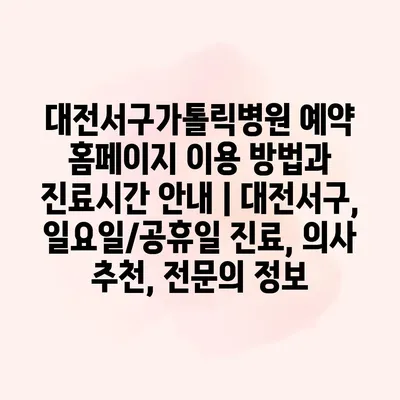 대전서구가톨릭병원 예약 홈페이지 이용 방법과 진료시간 안내 | 대전서구, 일요일/공휴일 진료, 의사 추천, 전문의 정보
