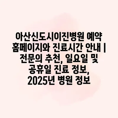 아산신도시이진병원 예약 홈페이지와 진료시간 안내 | 전문의 추천, 일요일 및 공휴일 진료 정보, 2025년 병원 정보