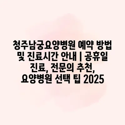 청주남궁요양병원 예약 방법 및 진료시간 안내 | 공휴일 진료, 전문의 추천, 요양병원 선택 팁 2025