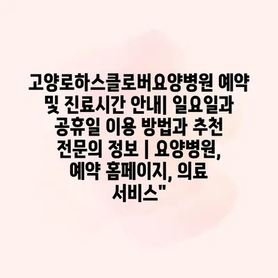 고양로하스클로버요양병원 예약 및 진료시간 안내| 일요일과 공휴일 이용 방법과 추천 전문의 정보 | 요양병원, 예약 홈페이지, 의료 서비스”
