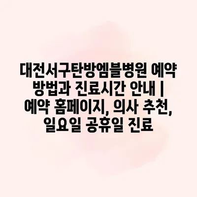 대전서구탄방엠블병원 예약 방법과 진료시간 안내 | 예약 홈페이지, 의사 추천, 일요일 공휴일 진료