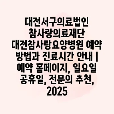 대전서구의료법인 참사랑의료재단 대전참사랑요양병원 예약 방법과 진료시간 안내 | 예약 홈페이지, 일요일 공휴일, 전문의 추천, 2025