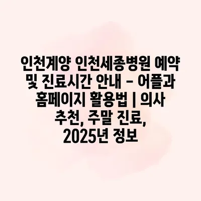 인천계양 인천세종병원 예약 및 진료시간 안내 – 어플과 홈페이지 활용법 | 의사 추천, 주말 진료, 2025년 정보