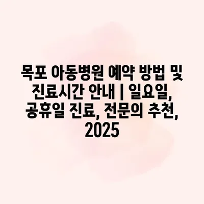 목포 아동병원 예약 방법 및 진료시간 안내 | 일요일, 공휴일 진료, 전문의 추천, 2025