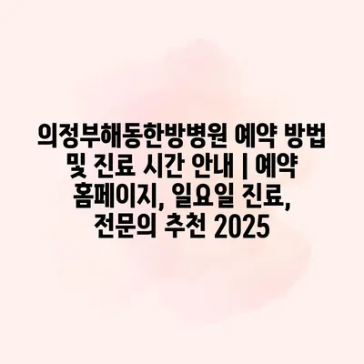 의정부해동한방병원 예약 방법 및 진료 시간 안내 | 예약 홈페이지, 일요일 진료, 전문의 추천 2025