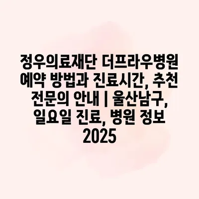 정우의료재단 더프라우병원 예약 방법과 진료시간, 추천 전문의 안내 | 울산남구, 일요일 진료, 병원 정보 2025