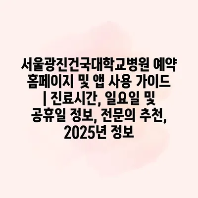 서울광진건국대학교병원 예약 홈페이지 및 앱 사용 설명서는 편리한 진료 예약을 도와줍니다. 진료시간은 평일 오전 9시부터 오후 6시까지 운영되며, 주말 및 공휴일에는 휴진합니다. 특히, 일요일에 진료가… 더 보기 »서울광진건국대학교병원 예약 홈페이지 및 앱 사용 가이드 | 진료시간, 일요일 및 공휴일 정보, 전문의 추천, 2025년 정보