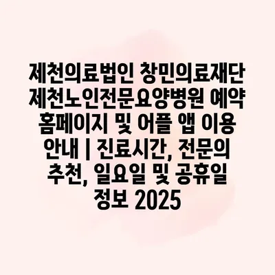 제천의료법인 창민의료재단 제천노인전문요양병원의 예약은 이제 더 간편해졌습니다. 홈페이지와 어플 앱을 통해 손쉽게 예약할 수 있는 방법을 소개합니다. 진료시간은 평일 오전 9시부터 오후 6시까지이며, 토요일은 오전… 더 보기 »제천의료법인 창민의료재단 제천노인전문요양병원 예약 홈페이지 및 어플 앱 이용 안내 | 진료시간, 전문의 추천, 일요일 및 공휴일 정보 2025