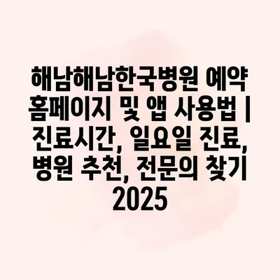 해남해남한국병원 예약 홈페이지 및 앱 사용법 | 진료시간, 일요일 진료, 병원 추천, 전문의 찾기 2025