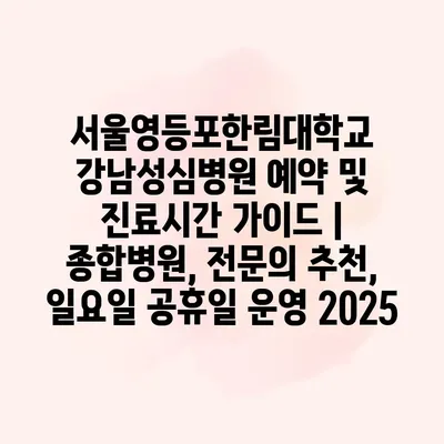 서울영등포한림대학교 강남성심병원 예약 및 진료시간 가이드 | 종합병원, 전문의 추천, 일요일 공휴일 운영 2025