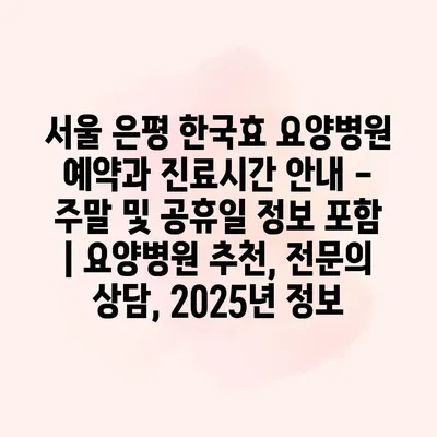 서울 은평 한국효 요양병원 예약과 진료시간 안내 – 주말 및 공휴일 정보 포함 | 요양병원 추천, 전문의 상담, 2025년 정보