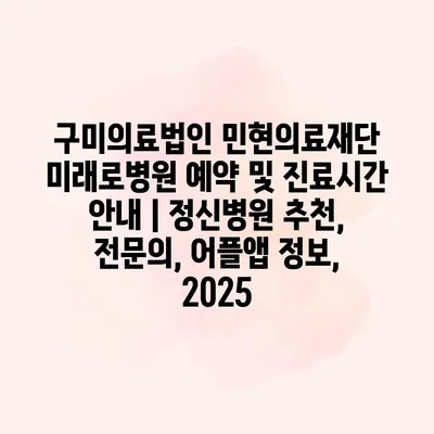 구미의료법인 민현의료재단 미래로병원 예약 및 진료시간 안내 | 정신병원 추천, 전문의, 어플앱 정보, 2025