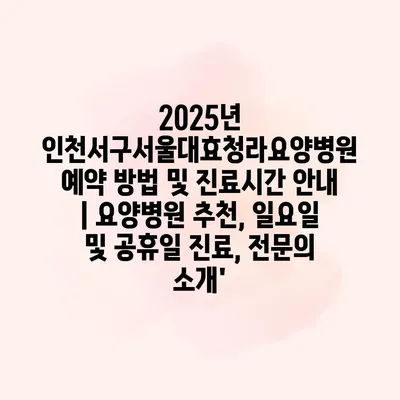 2025년 인천서구서울대효청라요양병원 예약 방법 및 진료시간 안내 | 요양병원 추천, 일요일 및 공휴일 진료, 전문의 소개’