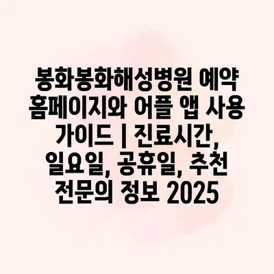봉화봉화해성병원 예약 홈페이지와 어플 앱 사용 가이드 | 진료시간, 일요일, 공휴일, 추천 전문의 정보 2025