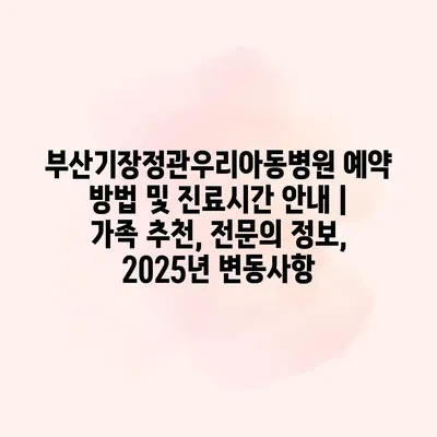 부산기장정관우리아동병원 예약 방법 및 진료시간 안내 | 가족 추천, 전문의 정보, 2025년 변동사항