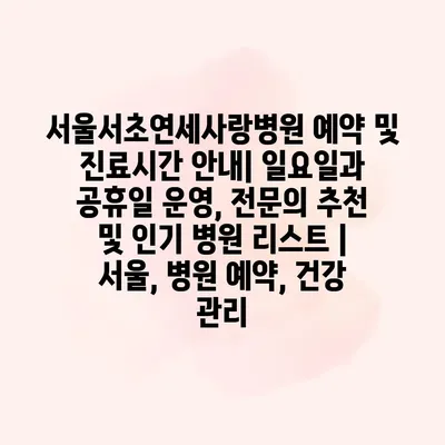 서울서초연세사랑병원 예약 및 진료시간 안내| 일요일과 공휴일 운영, 전문의 추천 및 인기 병원 리스트 | 서울, 병원 예약, 건강 관리