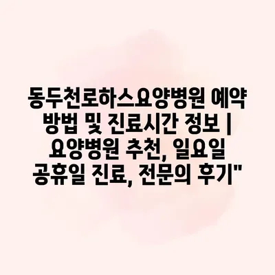동두천로하스요양병원 예약 방법 및 진료시간 정보 | 요양병원 추천, 일요일 공휴일 진료, 전문의 후기”