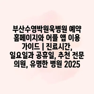 부산수영박원욱병원 예약 홈페이지와 어플 앱 이용 가이드 | 진료시간, 일요일과 공휴일, 추천 전문 의원, 유명한 병원 2025