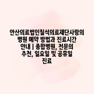 안산의료법인칠석의료재단사랑의병원 예약 방법과 진료시간 안내 | 종합병원, 전문의 추천, 일요일 및 공휴일 진료
