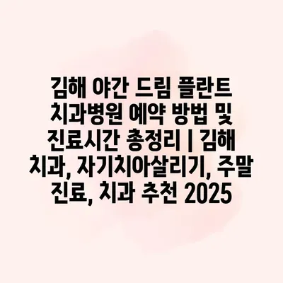 김해 야간 드림 플란트 치과병원 예약 방법 및 진료시간 총정리 | 김해 치과, 자기치아살리기, 주말 진료, 치과 추천 2025