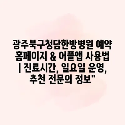 광주북구청담한방병원 예약 홈페이지 & 어플앱 사용법 | 진료시간, 일요일 운영, 추천 전문의 정보”