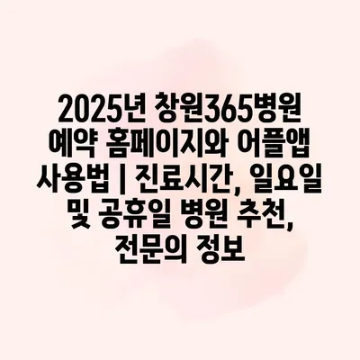 2025년 창원365병원 예약 홈페이지와 어플앱 사용법 | 진료시간, 일요일 및 공휴일 병원 추천, 전문의 정보