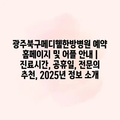 광주북구메디웰한방병원 예약 홈페이지 및 어플 안내 | 진료시간, 공휴일, 전문의 추천, 2025년 정보 소개