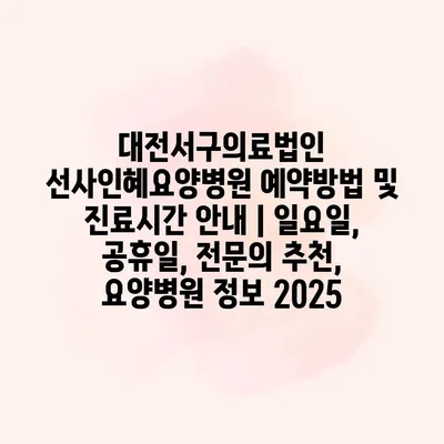 대전서구의료법인 선사인혜요양병원 예약방법 및 진료시간 안내 | 일요일, 공휴일, 전문의 추천, 요양병원 정보 2025