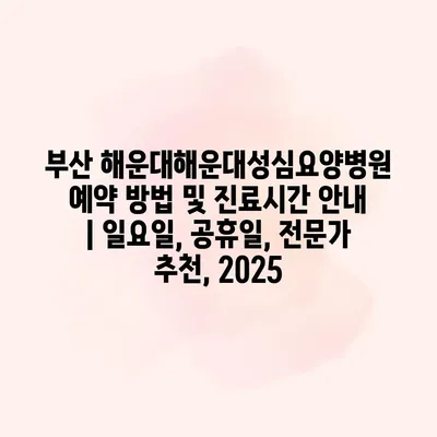 부산 해운대해운대성심요양병원 예약 방법 및 진료시간 안내 | 일요일, 공휴일, 전문가 추천, 2025