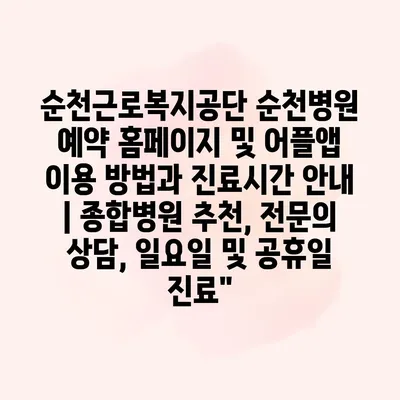 순천근로복지공단 순천병원 예약 홈페이지 및 어플앱 이용 방법과 진료시간 안내 | 종합병원 추천, 전문의 상담, 일요일 및 공휴일 진료”