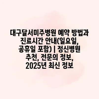 대구달서미주병원 예약 방법과 진료시간 안내(일요일, 공휴일 포함) | 정신병원 추천, 전문의 정보, 2025년 최신 정보