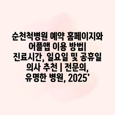 순천척병원 예약 홈페이지와 어플앱 이용 방법| 진료시간, 일요일 및 공휴일 의사 추천 | 전문의, 유명한 병원, 2025′