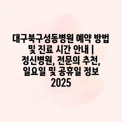 대구북구성동병원 예약 방법 및 진료 시간 안내 | 정신병원, 전문의 추천, 일요일 및 공휴일 정보 2025