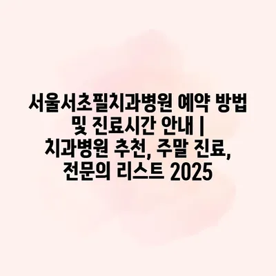 서울서초필치과병원 예약 방법 및 진료시간 안내 | 치과병원 추천, 주말 진료, 전문의 리스트 2025