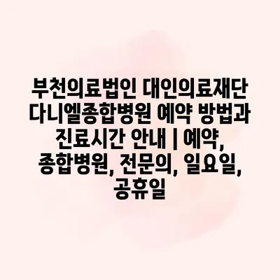 부천의료법인 대인의료재단 다니엘종합병원 예약 방법과 진료시간 안내 | 예약, 종합병원, 전문의, 일요일, 공휴일