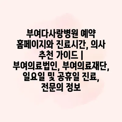 부여다사랑병원 예약 홈페이지와 진료시간, 의사 추천 가이드 | 부여의료법인, 부여의료재단, 일요일 및 공휴일 진료, 전문의 정보