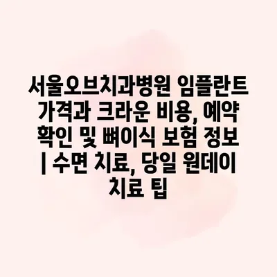 서울오브치과병원 임플란트 가격과 크라운 비용, 예약 확인 및 뼈이식 보험 정보 | 수면 치료, 당일 원데이 치료 팁