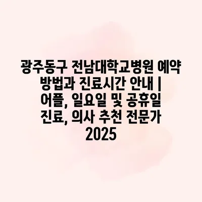 광주동구 전남대학교병원 예약 방법과 진료시간 안내 | 어플, 일요일 및 공휴일 진료, 의사 추천 전문가 2025