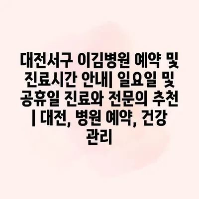 대전서구 이김병원 예약 및 진료시간 안내| 일요일 및 공휴일 진료와 전문의 추천 | 대전, 병원 예약, 건강 관리