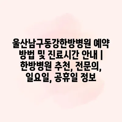 울산남구동강한방병원 예약 방법 및 진료시간 공지 | 한방병원 추천, 전연락, 일요일, 공휴일 정보 울산남구동강한방병원은 다양한 한방 치료를 제공하는 전문 의료 기관입니다. 예약 방법은 전화 예약… 더 보기 »울산남구동강한방병원 예약 방법 및 진료시간 안내 | 한방병원 추천, 전문의, 일요일, 공휴일 정보