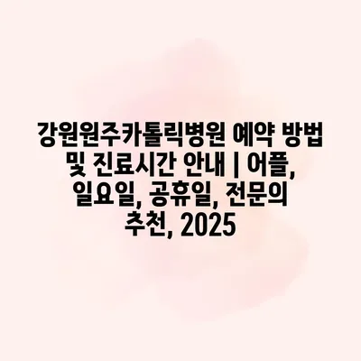 강원원주카톨릭병원 예약 방법 및 진료시간 공지 | 어플, 일요일, 공휴일, 전연락 추천, 2025 강원원주카톨릭병원은 체계적이고 편리한 진료 서비스를 제공하기 위해 다양한 예약 방법을 알려알려드리겠습니다. 가장… 더 보기 »강원원주카톨릭병원 예약 방법 및 진료시간 안내 | 어플, 일요일, 공휴일, 전문의 추천, 2025