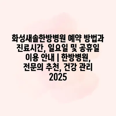 화성새솔한방병원 예약 방법과 진료시간, 일요일 및 공휴일 이용 안내 | 한방병원, 전문의 추천, 건강 관리 2025