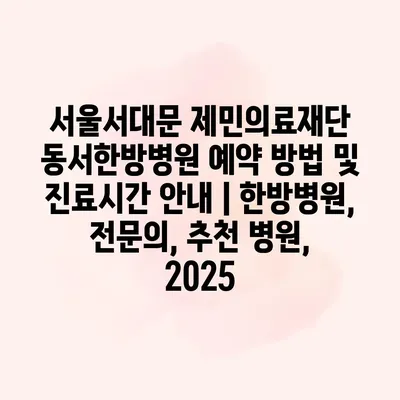서울서대문 제민의료재단 동서한방병원은 현대 의학과 전통 한방 치료를 조화롭게 결합한 병원입니다. 진료 시간을 확인하실 때는 평일은 오전 9시부터 오후 6시까지 운영되며, 토요일은 오전 9시부터 오후… 더 보기 »서울서대문 제민의료재단 동서한방병원 예약 방법 및 진료시간 안내 | 한방병원, 전문의, 추천 병원, 2025