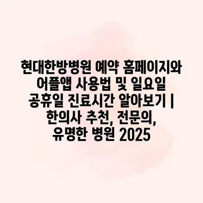 현대한방병원 예약 홈페이지와 어플앱 사용법 및 일요일 공휴일 진료시간 알아보기 | 한의사 추천, 전문의, 유명한 병원 2025