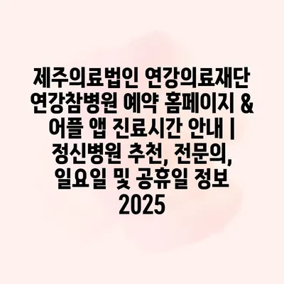 제주의료법인 연강의료재단 연강참병원 예약 홈페이지 & 어플 앱 진료시간 안내 | 정신병원 추천, 전문의, 일요일 및 공휴일 정보 2025