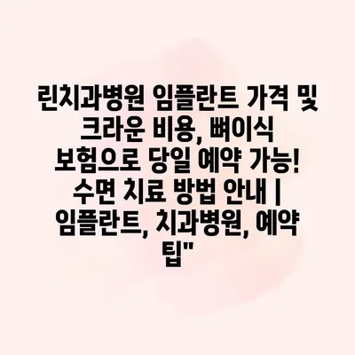 린치과병원 임플란트 가격 및 크라운 비용, 뼈이식 보험으로 당일 예약 가능! 수면 치료 방법 공지 | 임플란트, 치과병원, 예약 팁 임플란트 치료를 고민하고 계신다면 린치과병원의… 더 보기 »린치과병원 임플란트 가격 및 크라운 비용, 뼈이식 보험으로 당일 예약 가능! 수면 치료 방법 안내 | 임플란트, 치과병원, 예약 팁”