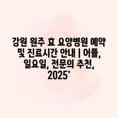 강원 원주 효 요양병원은 전문적인 노인 요양 서비스를 제공하는 곳으로, 편안한 치유 환경을 자랑합니다. 본 병원의 예약 및 진료시간은 환자의 편의를 고려하여 구성되어 있습니다. 자세한… 더 보기 »강원 원주 효 요양병원 예약 및 진료시간 안내 | 어플, 일요일, 전문의 추천, 2025′