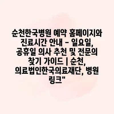 순천한국병원 예약 홈페이지와 진료시간 공지 – 일요일, 공휴일 의사 추천 및 전연락 찾기 설명서 순천한국병원은 환자분들이 편리하게 예약할 수 있도록 다양한 온라인 서비스를 제공하고 있습니다.… 더 보기 »순천한국병원 예약 홈페이지와 진료시간 안내 – 일요일, 공휴일 의사 추천 및 전문의 찾기 가이드 | 순천, 의료법인한국의료재단, 병원 링크”