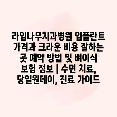 라임나무치과병원에서는 임플란트 가격과 크라운 비용에 대한 내용을 알려알려드리겠습니다. 병원의 전문가와 상담을 통해 본인에게 적합한 치료 계획을 세울 수 있습니다. 예약 방법은 간단합니다. 병원 홈페이지나 전화로… 더 보기 »라임나무치과병원 임플란트 가격과 크라운 비용 잘하는 곳 예약 방법 및 뼈이식 보험 정보 | 수면 치료, 당일원데이, 진료 가이드